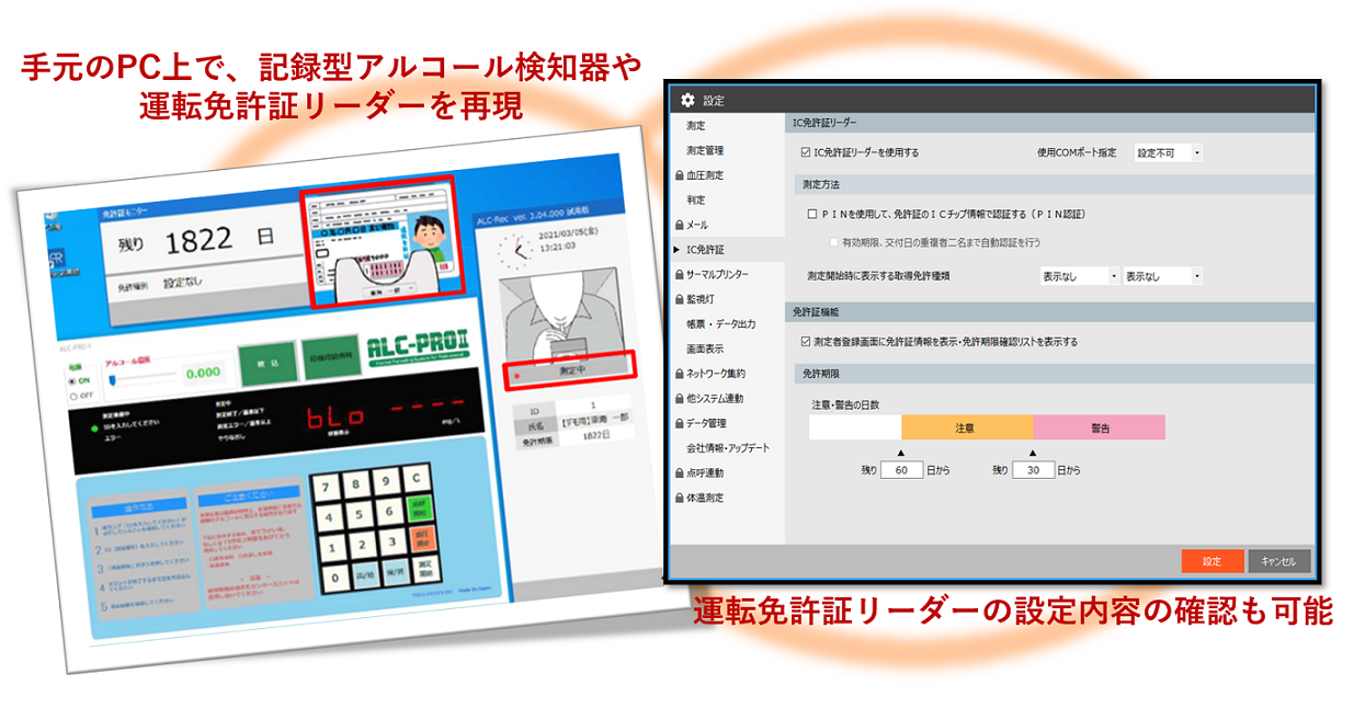 本アプリはアルコール測定器本体「ALC-PROⅡ」実機なしで、あたかも実機があるかのようにアルコール測定を体験できるアプリケーションとなっております。